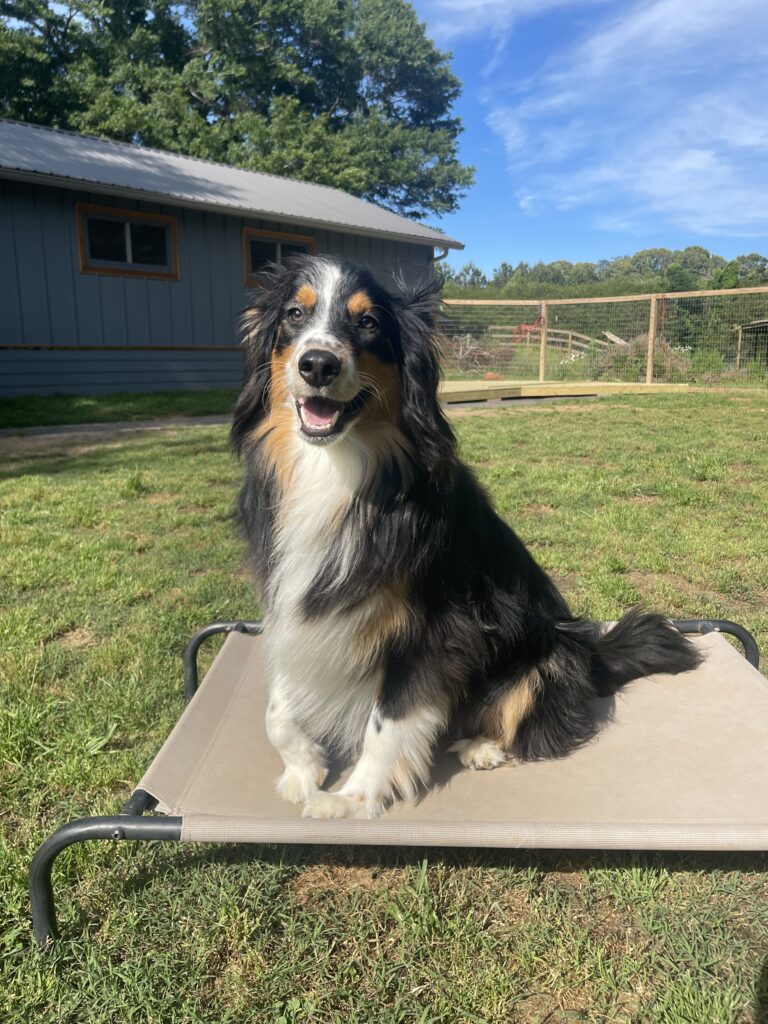 Bella, a seven-year-old rescue, came to us trembling at every sound. By week two, she was walking calmly through the field, watching instead of worrying.