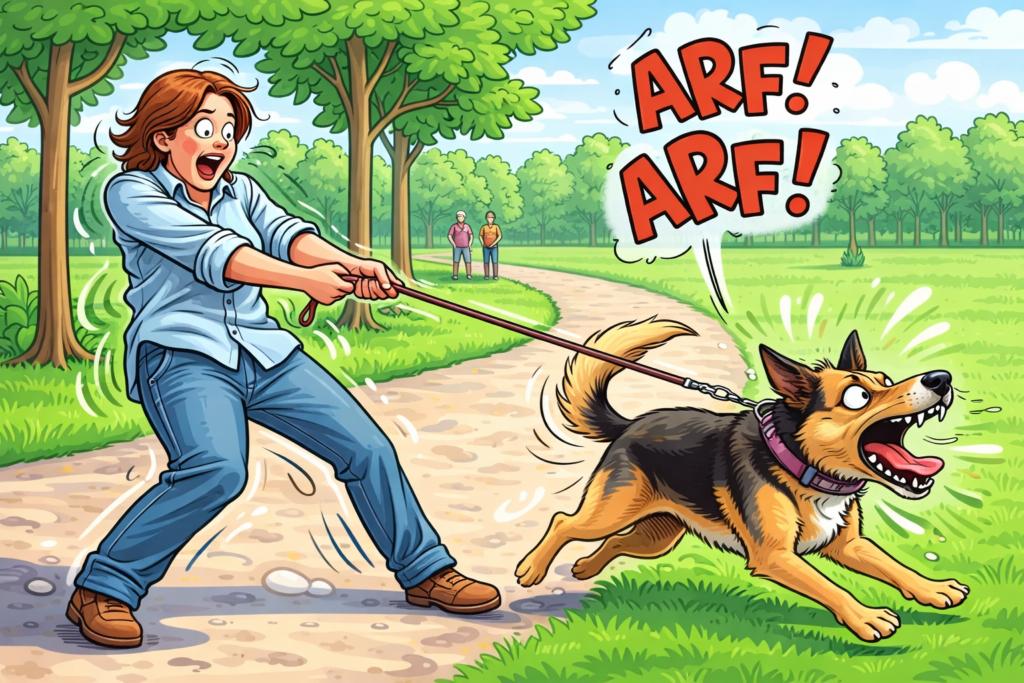 Often triggered by other dogs, people, or movement. The leash removes the dog’s ability to create distance, which increases panic.
